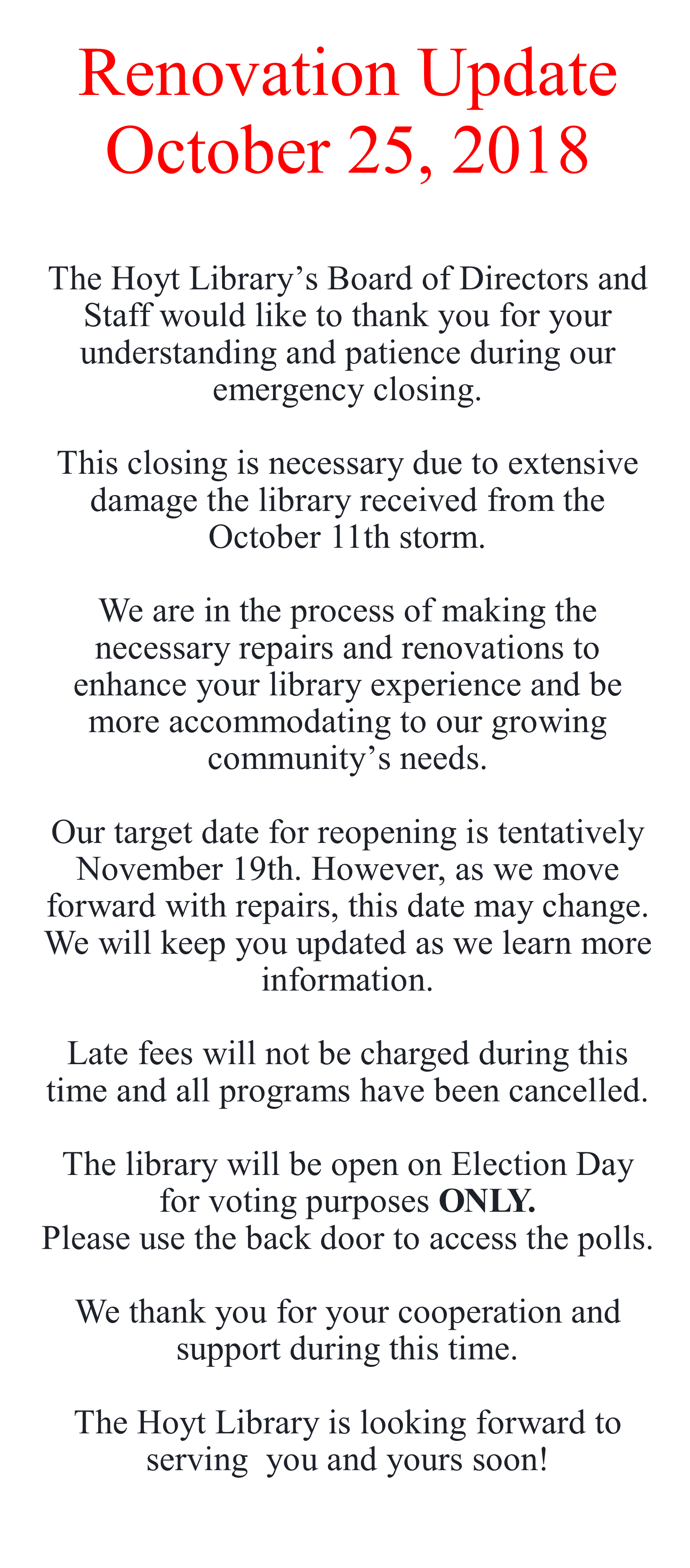 Renovations Sign October 25 2018